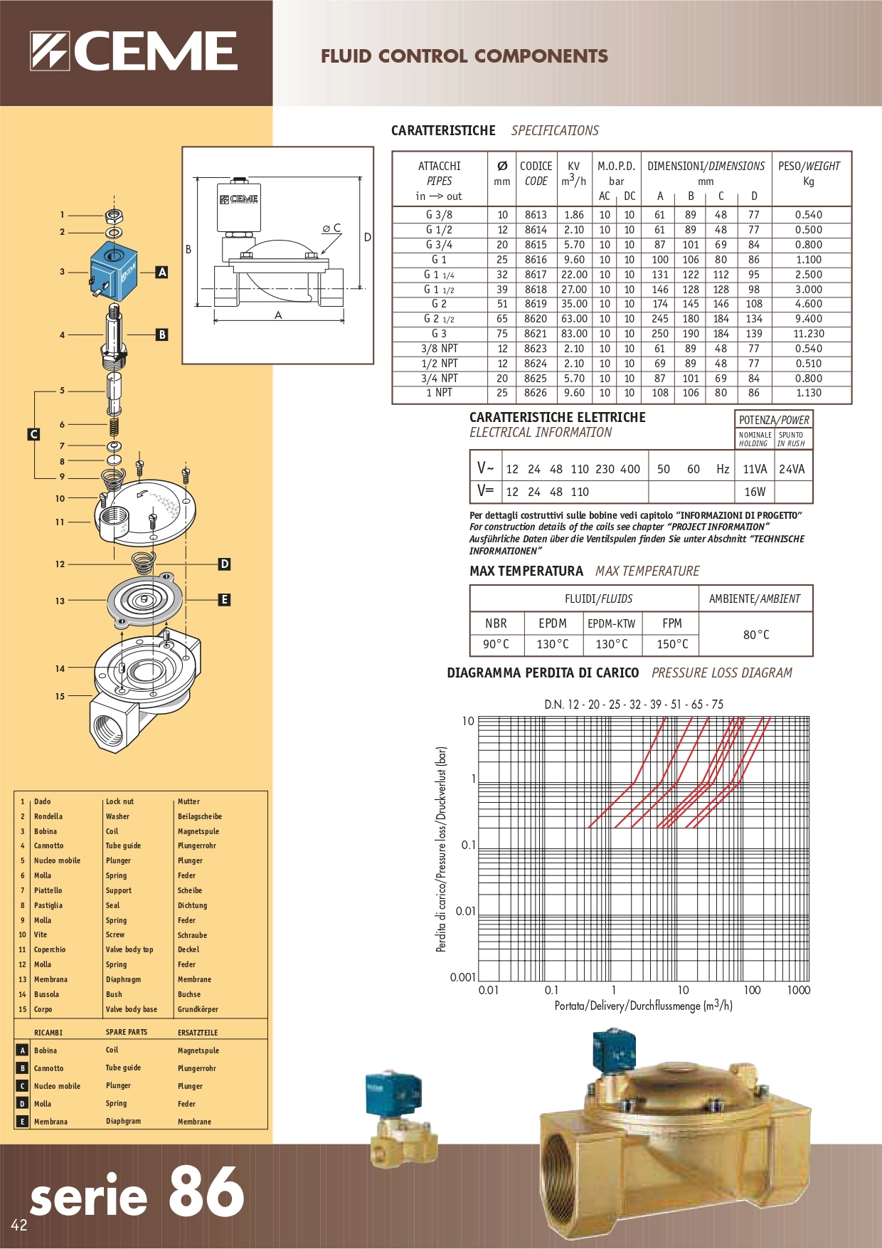 E/VALVOLA CEME 8614NN120SBC2 1/2 FF 2/2 NBR-20°C+90°C 24/DC