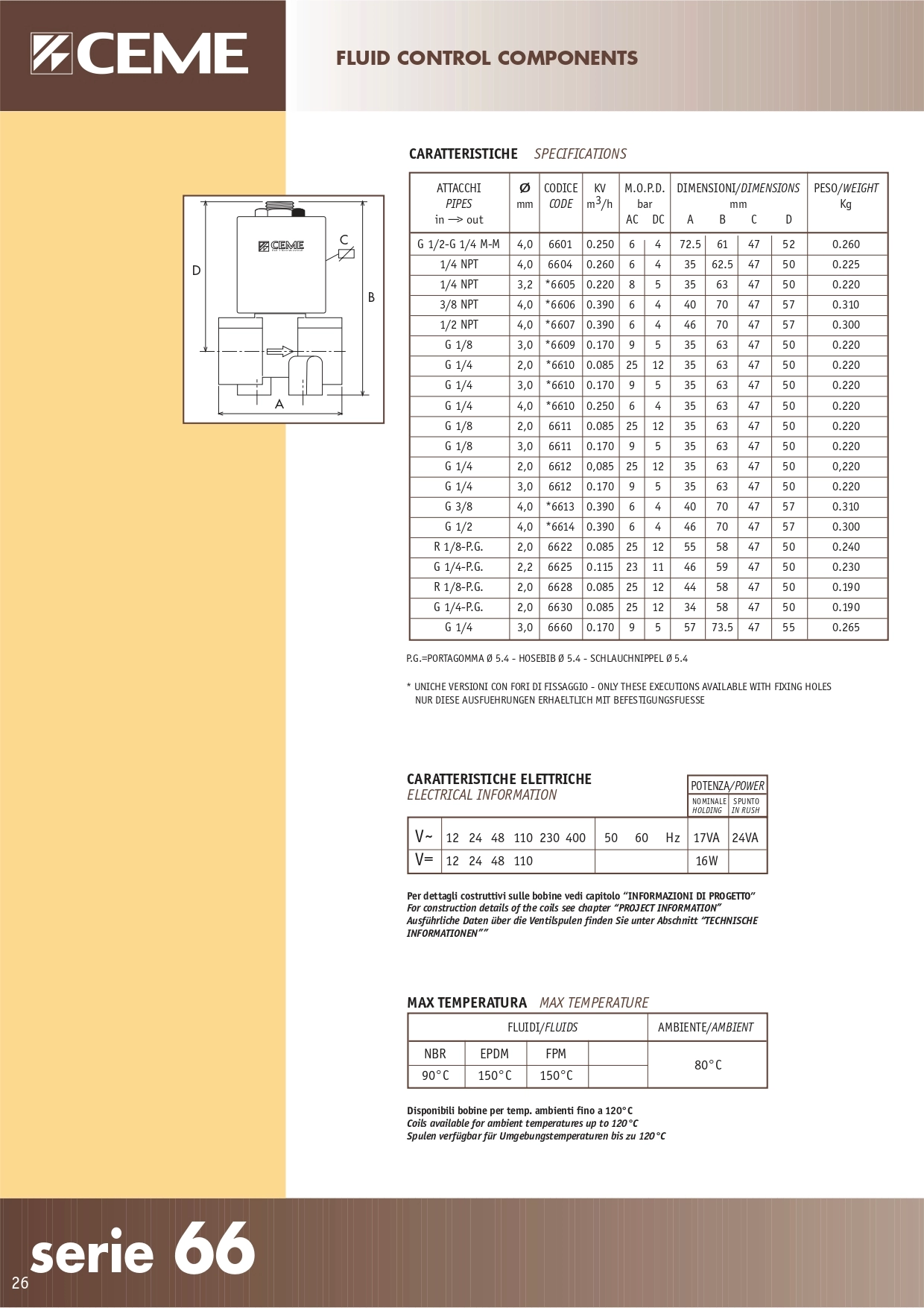 E/VALVOLA CEME 6610EN4,0SBC2 1/4 FF 2/2 EPDM-30°C+155°C24/DC