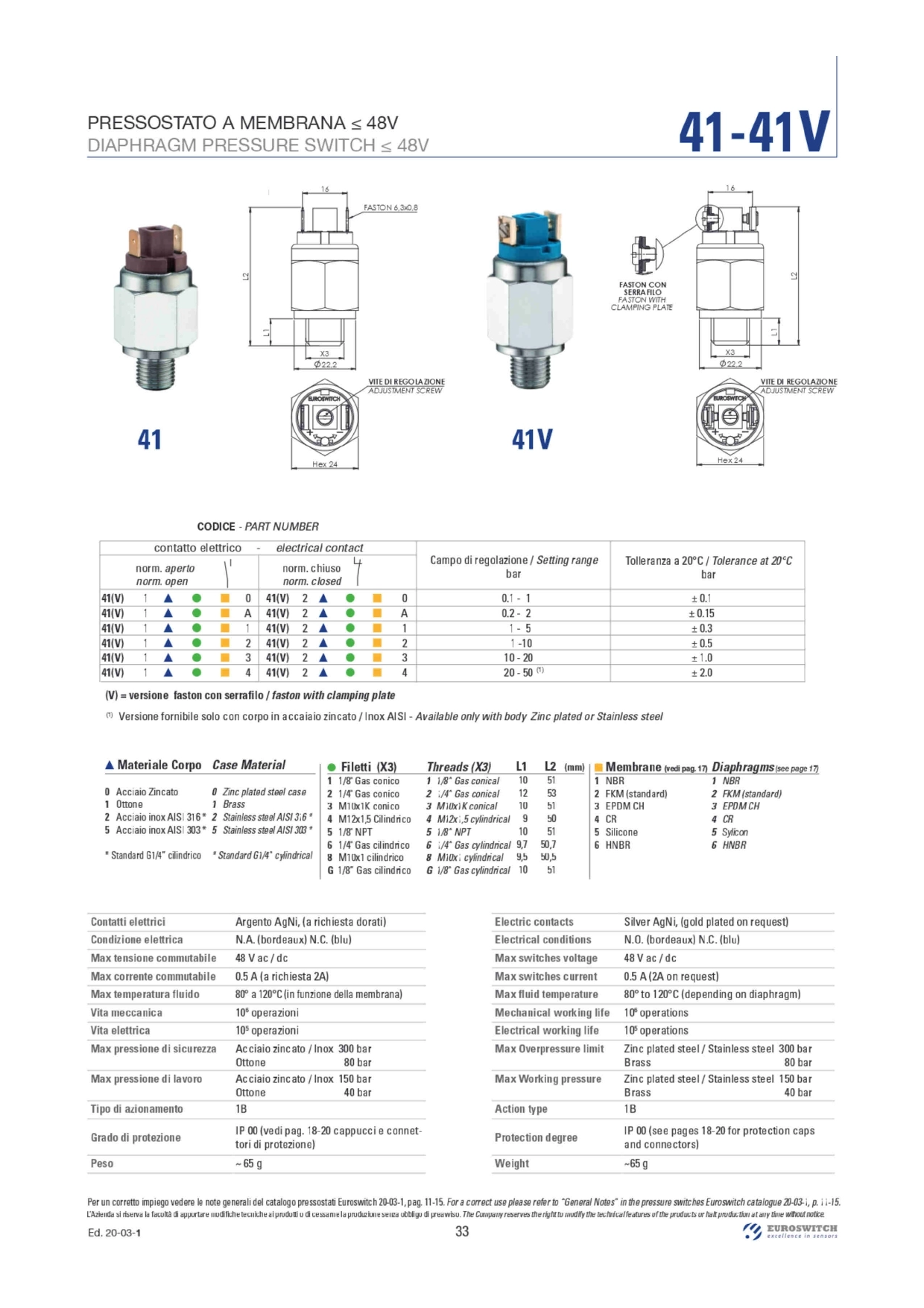 PRESSOSTATO PMN 150 A 14K CORPO ACCIAIO 50-150 BAR